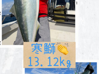 寒鰤13.12kg❗️西から風が強まり早上がりでしたが、各船大きな寒鰤釣られてました🎣当たれば寒鰤⁉️チャンスですよ〜❗️寒鰤狙いに行きませんか?お問合せください📲