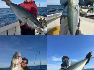 ボトム感度でポツリ・・・ポツリ・・・拾い釣りでしたが、西のポイントで釣れてるという事でお昼頃からお邪魔して来ました🛥️💨パラパラ浮いた感度が入り一流しめ直ぐにヒット❗️ヒットも続き皆さん鰤3〜5本キャッチでした😆寒鰤サイズは混ざりませんでしたが8キロサイズもよく肥えていて美味しそうでした👍